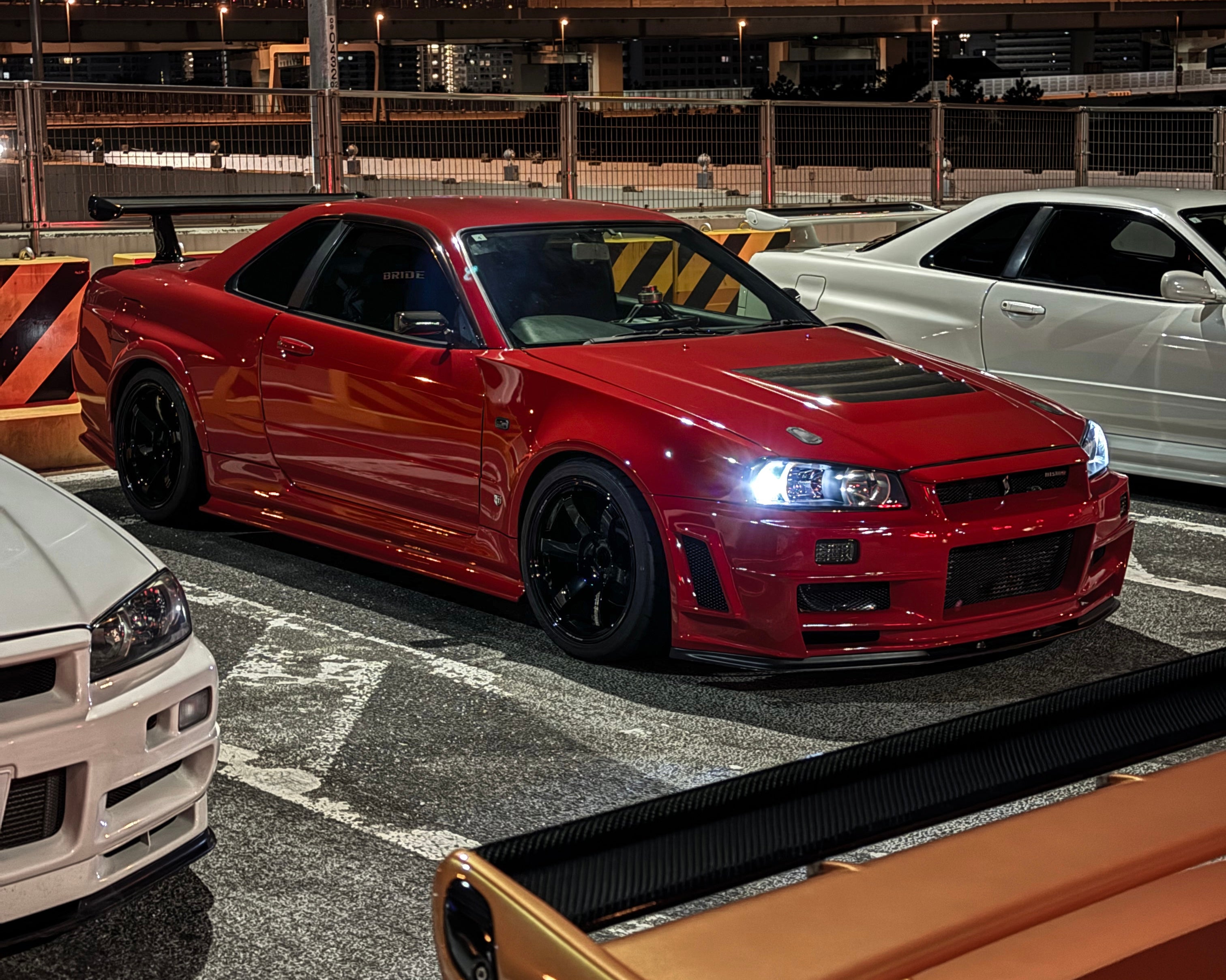 Cruise Tokyo in a cool R34 and hit the highway to a car meet!