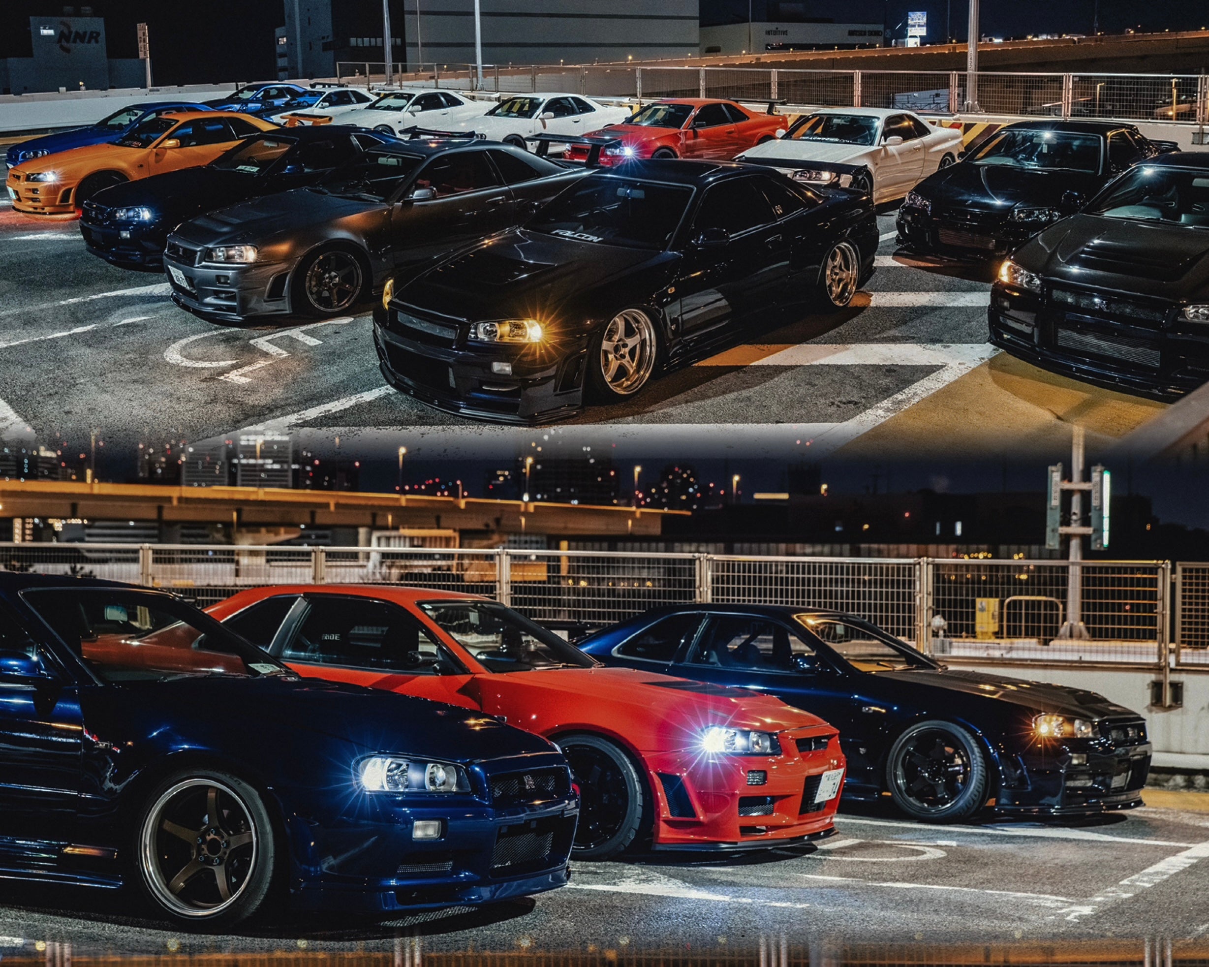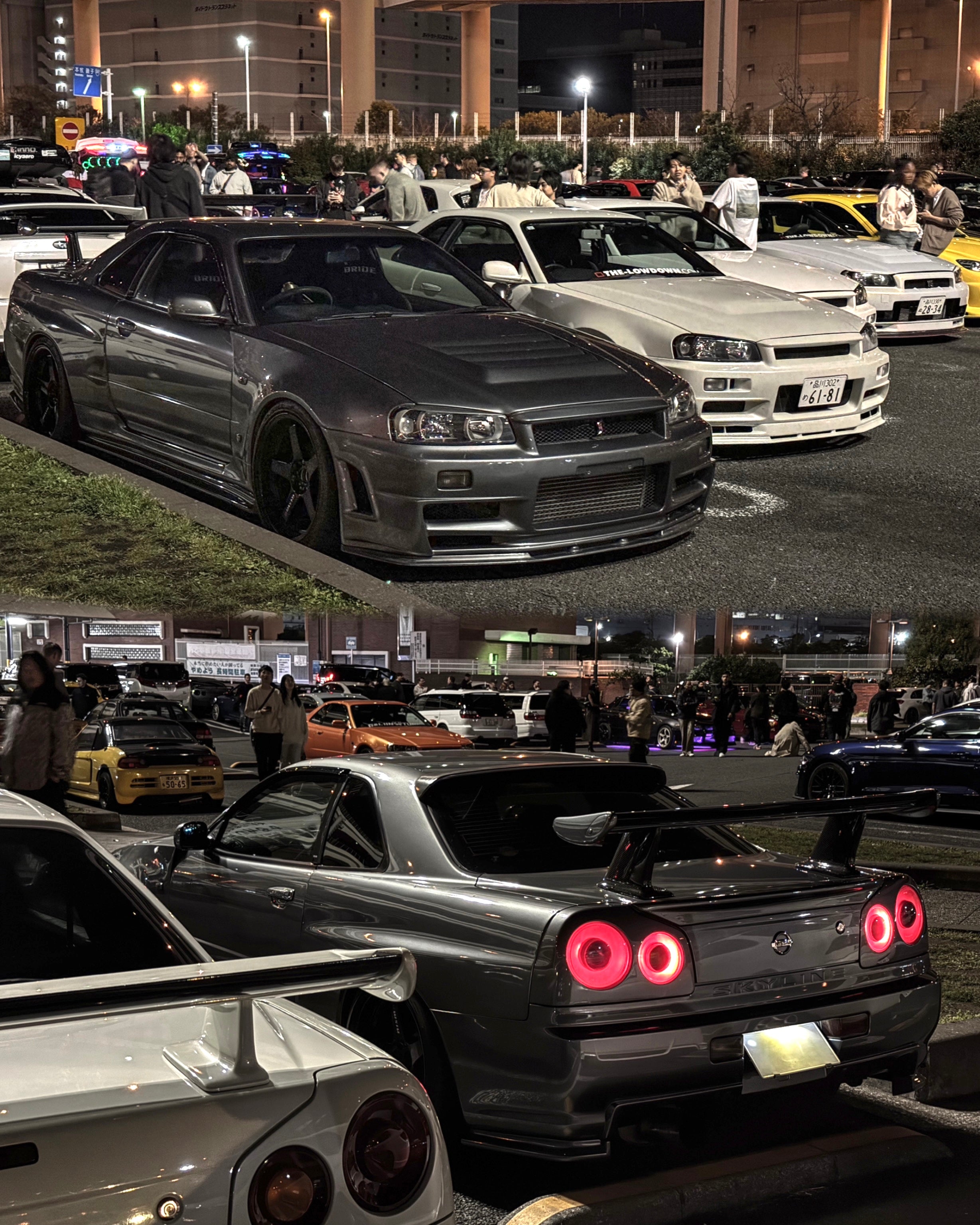 Cruise Tokyo in a cool R34 and hit the highway to a car meet!